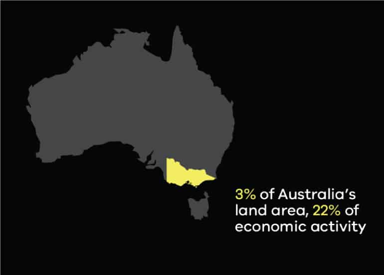 Giống như dân số, nền kinh tế của Victoria cũng đứng thứ 2 sau bang New South Wales. Kinh tế tiểu bang chiếm tới 1/4 tổng GDP quốc dân nước Úc. Tổng sản phẩm quốc dân (GSP) của Victoria là 459 tỉ đô vào tháng 6 năm 2020, với bình quân đầu người gần 69 nghìn đô la.